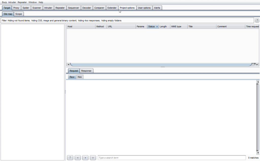 Select “Use Burp default”, then click “Start Burp”. The Picture below is the main interface of Burp Suite:
