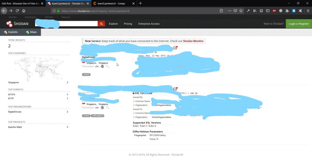 It sounds like shodan is better, right? Not really. Sometimes, Shodan.io shows detail about server too detail that can cause confusion. It is better than Censys.io, but still shows similar result set as Censys.io (the Database). However, it limits the results for free users.